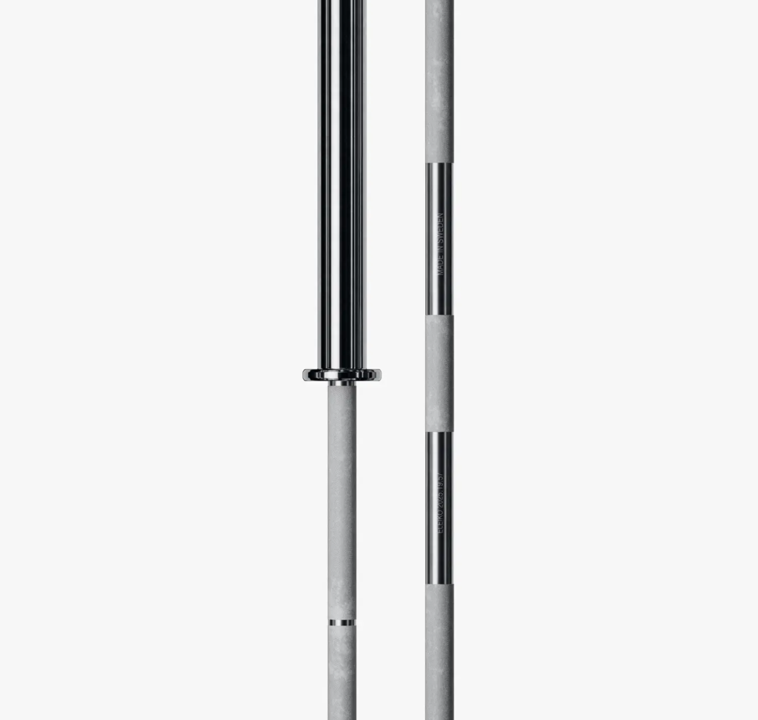 Built to competition specs for serious powerlifting training. Crafted in Sweden with German stainless steel for corrosion-resistant durability. 1.5 Power knurling on untreated steel secures your grip under max load. Self-lubricating bronze bushings ensure stable, controlled rotation. An 18 mm flange supports shaft rigidity and adds clearance for smoother racking. Silver-coloured elements identify this as IPF-certified training equipment.
